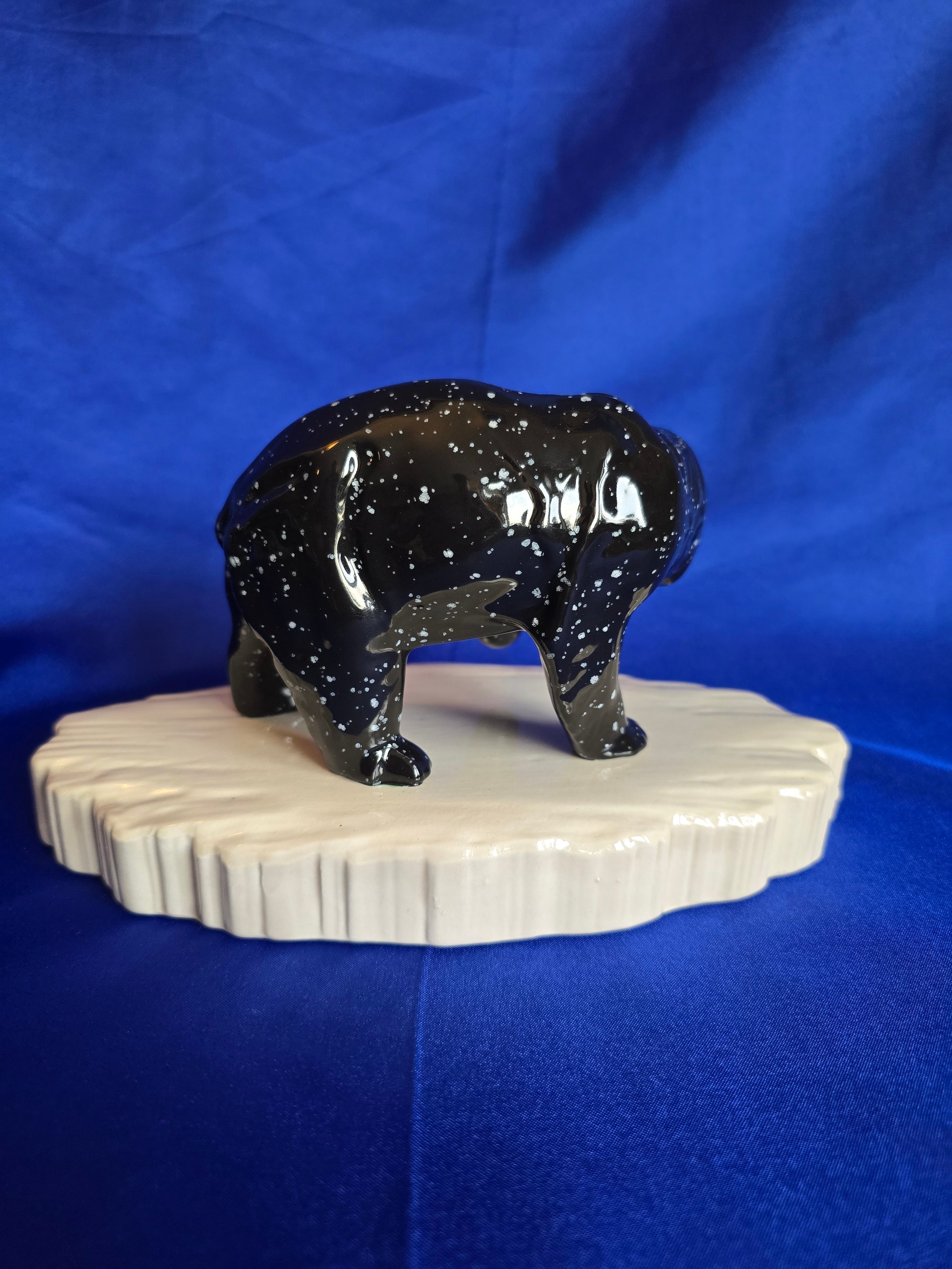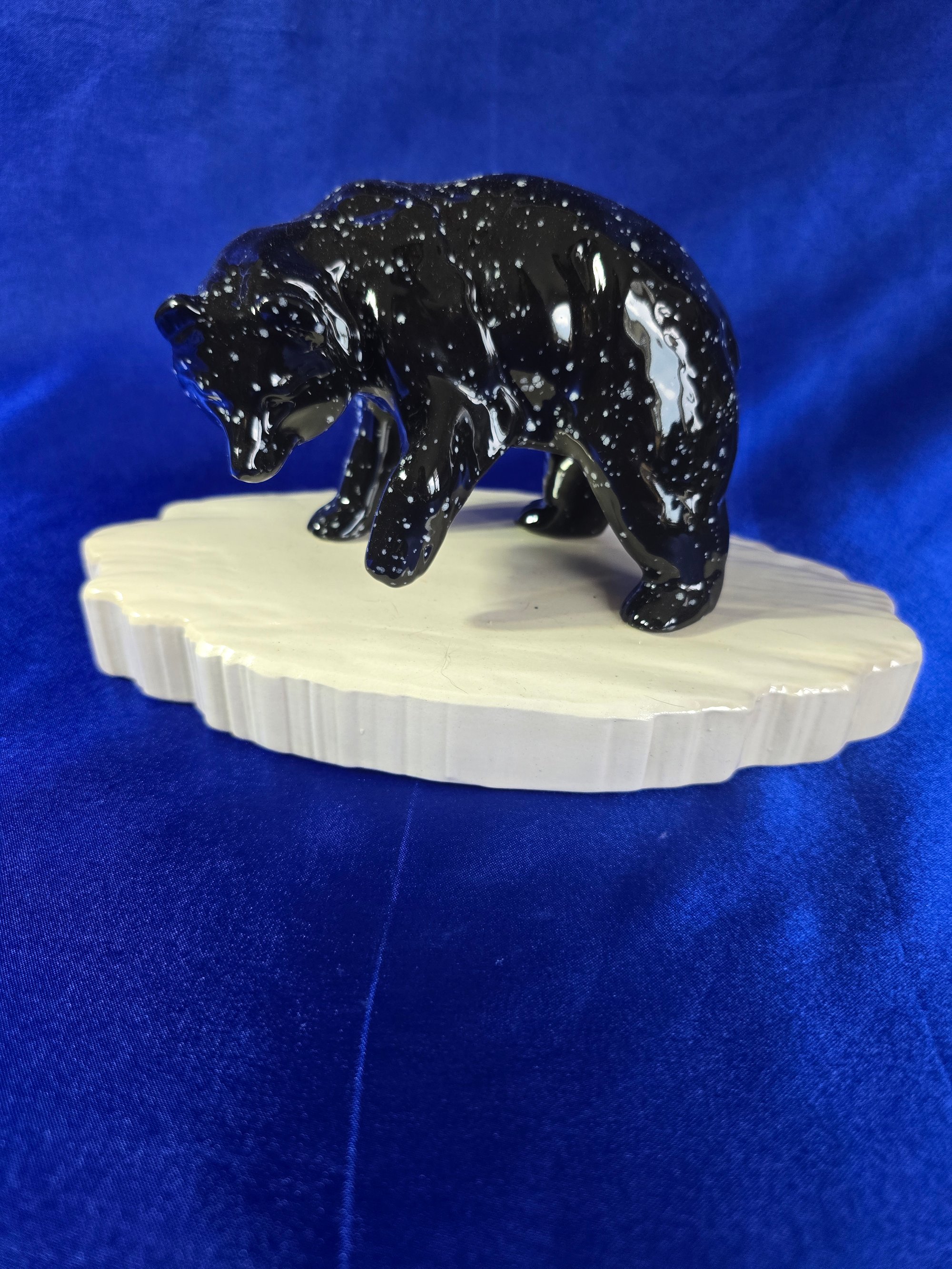 Bear on ice ceramic statue handmade from slip casting and painted . A little bit of nature added to your space. Great accent for gardens.