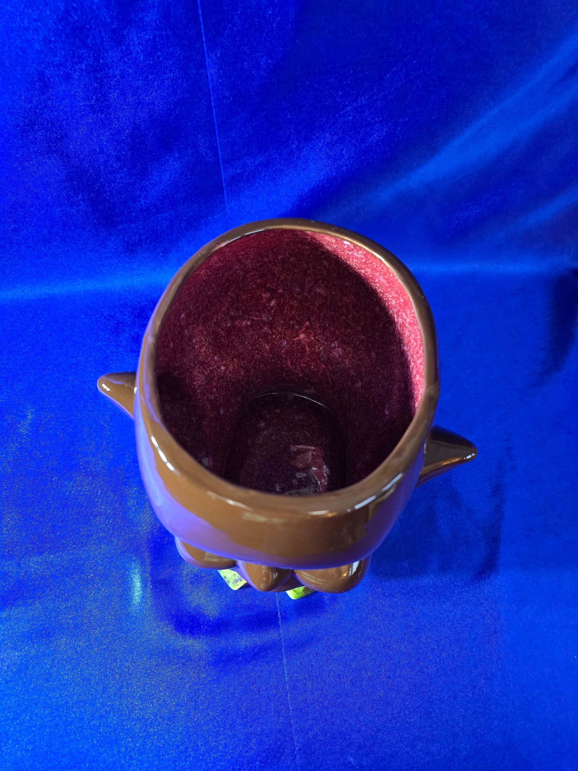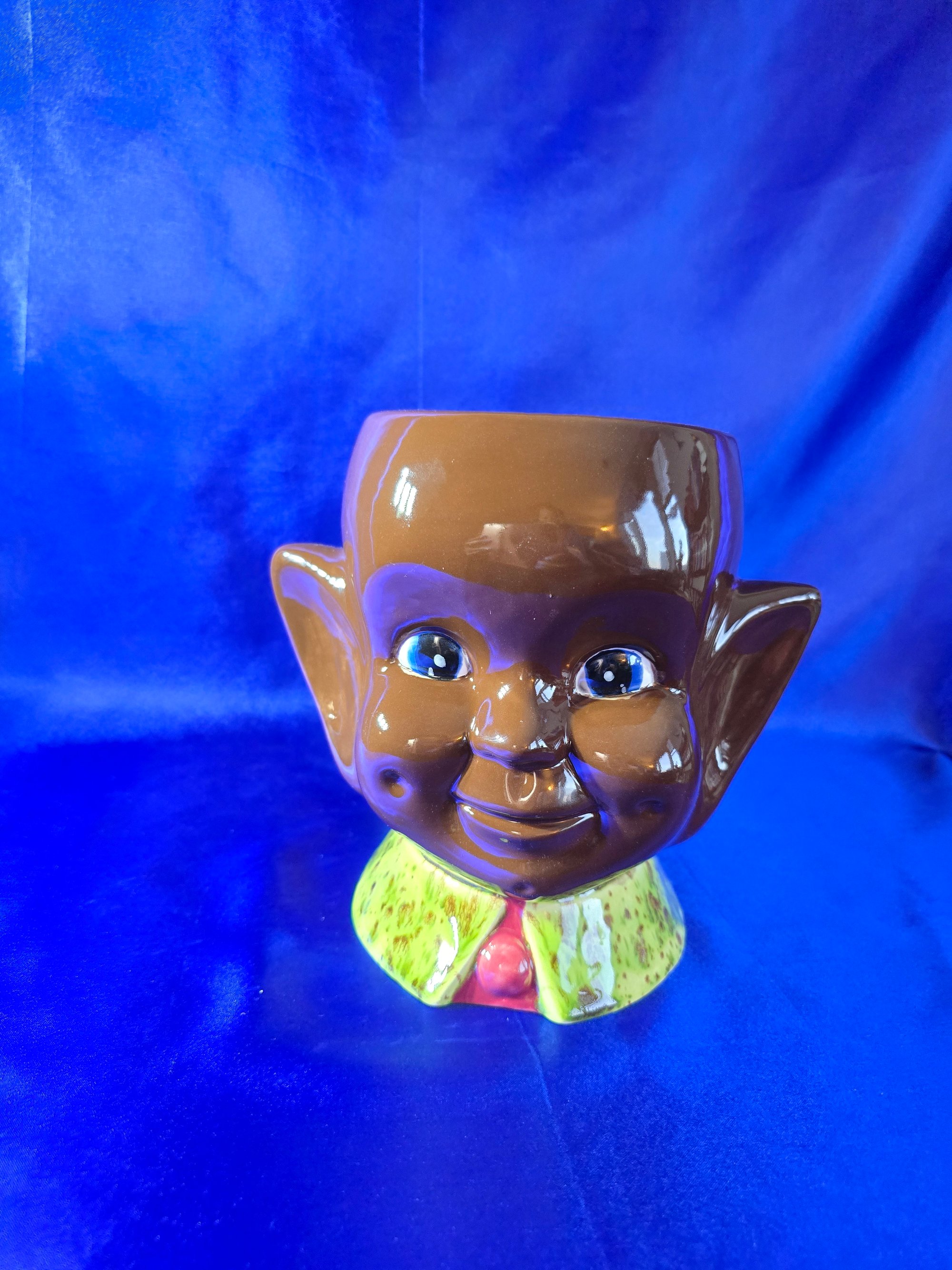 This ceramic elf head punch bowl, stands at 7 inches tall and is about 9 inches wide. He can hold about a half a gallon of punch or any other favorite drink. He will be the talk of the party or featured piece at any dinner party. This handmade treasure will definitely give them all something to talk about.