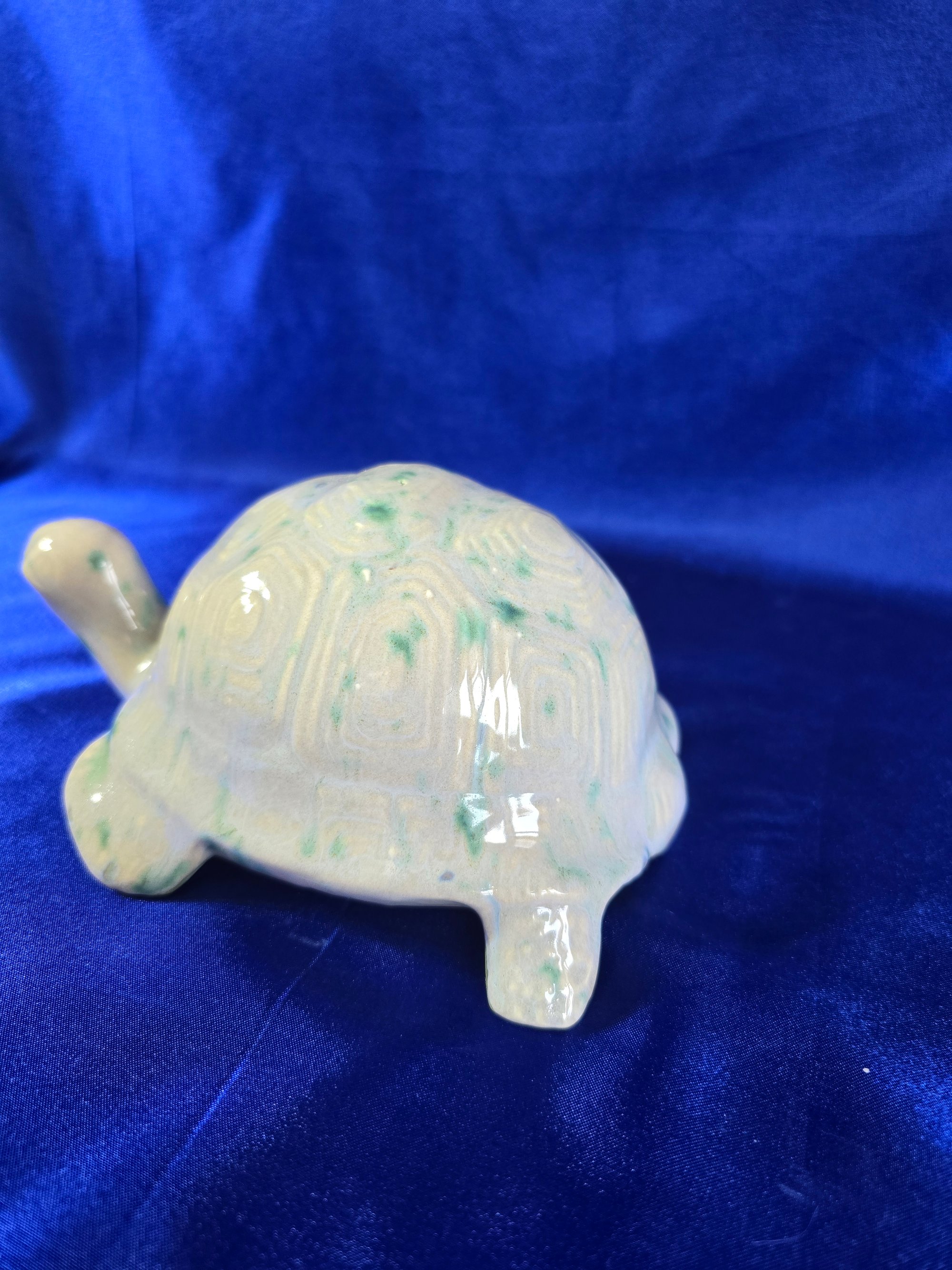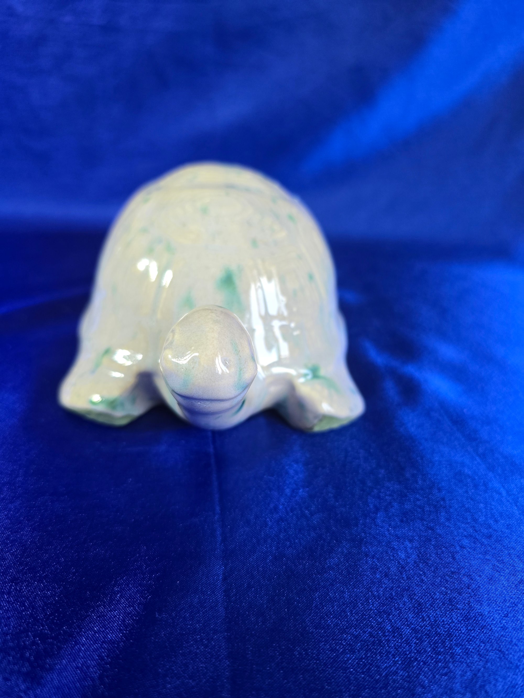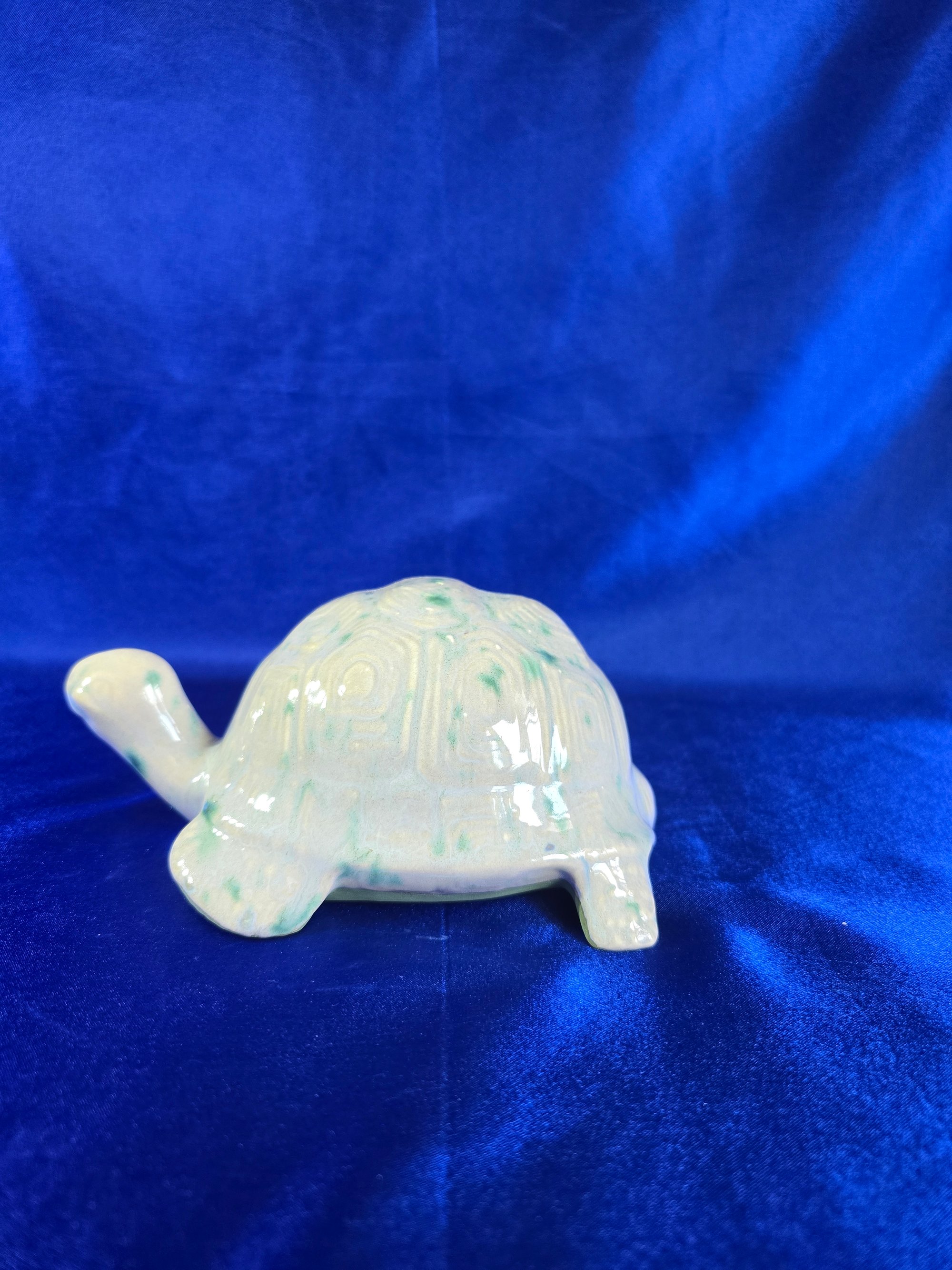 Cute colorful extraordinary turtle. Handmade from Earthenware and hand painted to add creative flare to any space. Great for garden decor or resting on a shelf. The possibilities are endless.