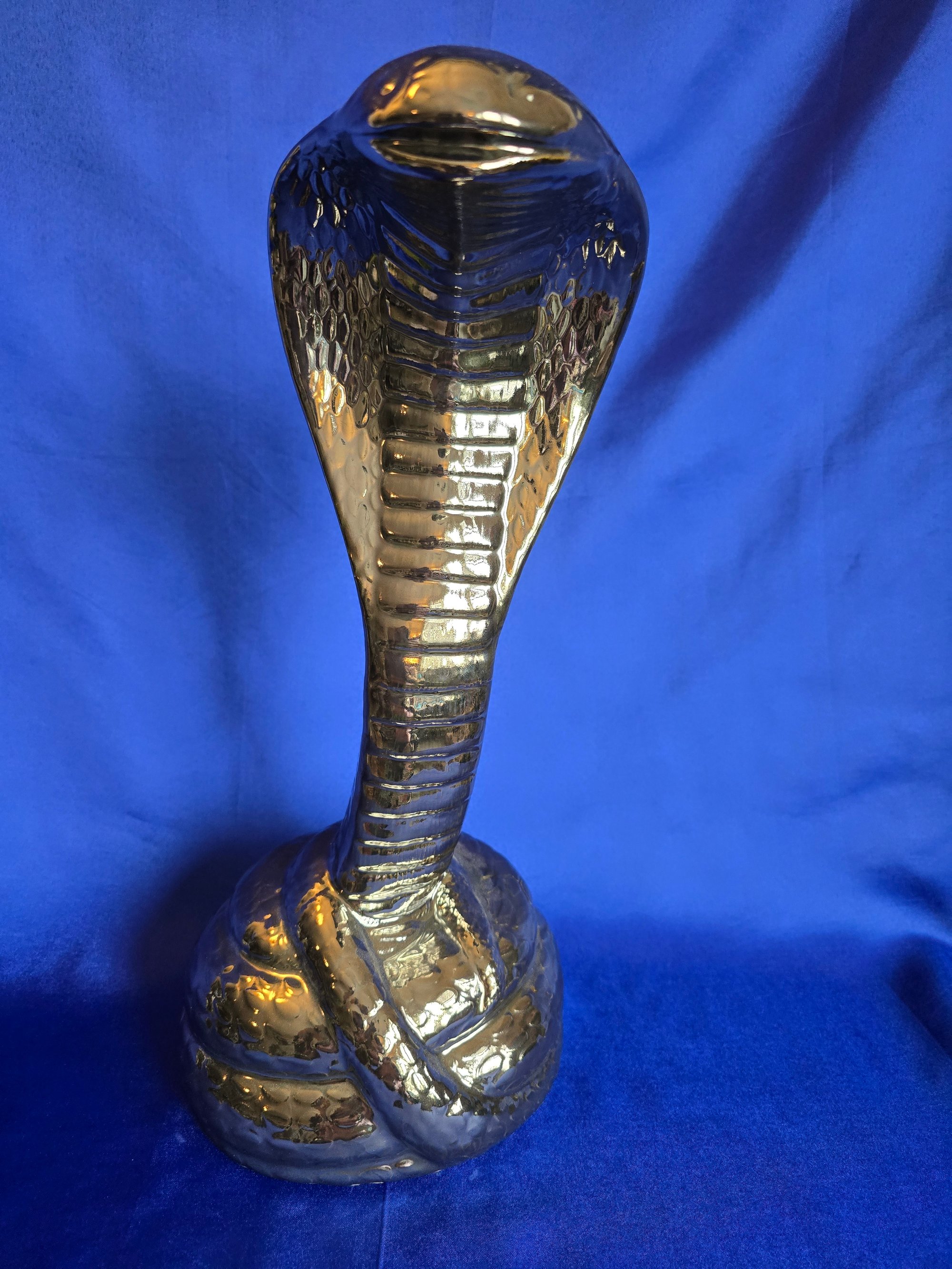 Vintage mold slip cast 1.5 feet cobra statue. Life-like, great for the garden. Handpainted in a metalic pewter for a stoic look.