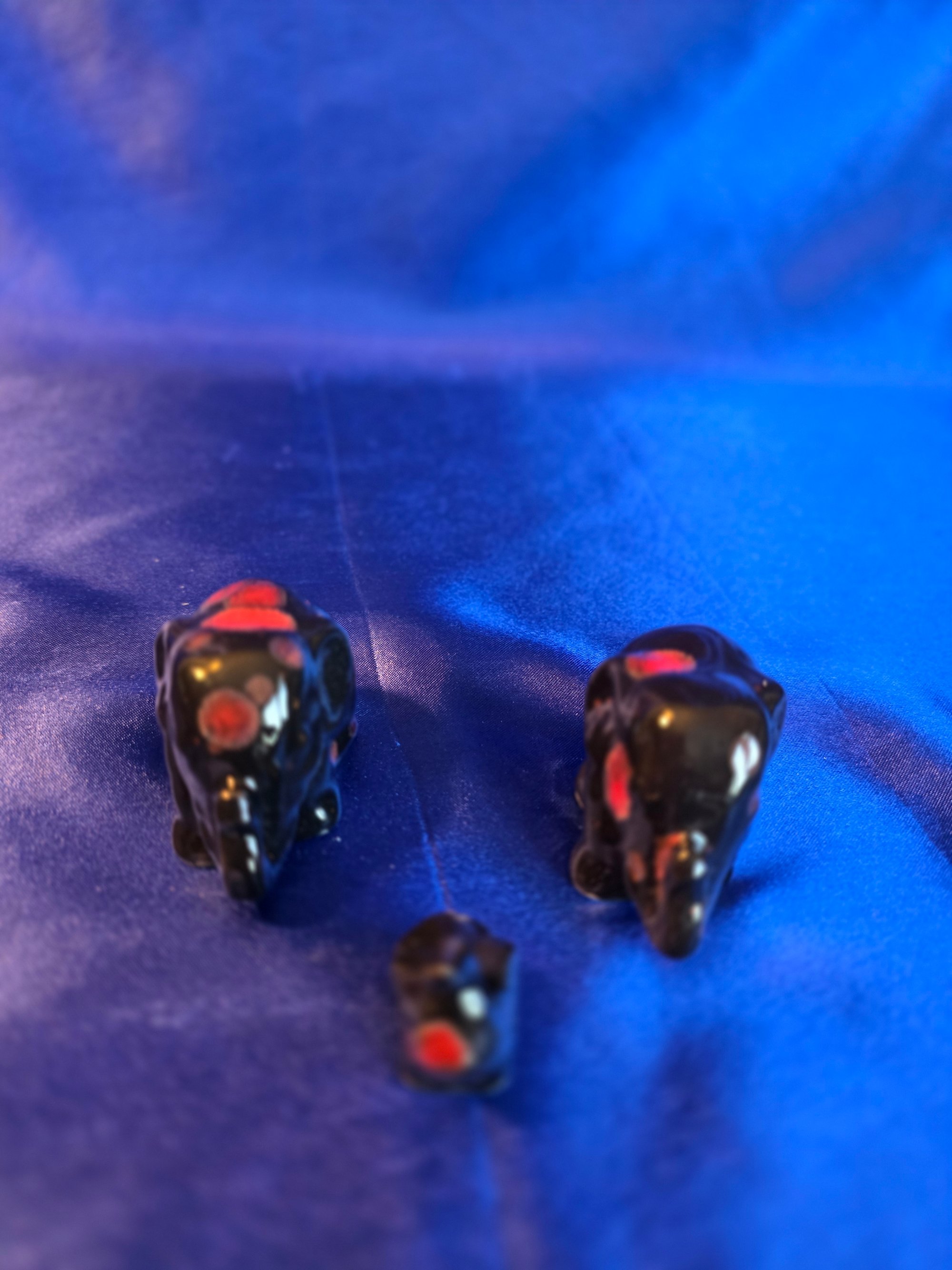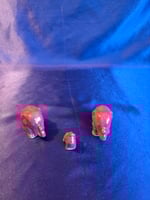 This adorable cute elephant family is about 1.5"H ,2.0"H for the parents and 1 25"H5 and 1.00"W for the baby. This family is a wonderful trinket and accent piece to personalize and make your space cozy. Handmade and painted in whimsical fun colors.